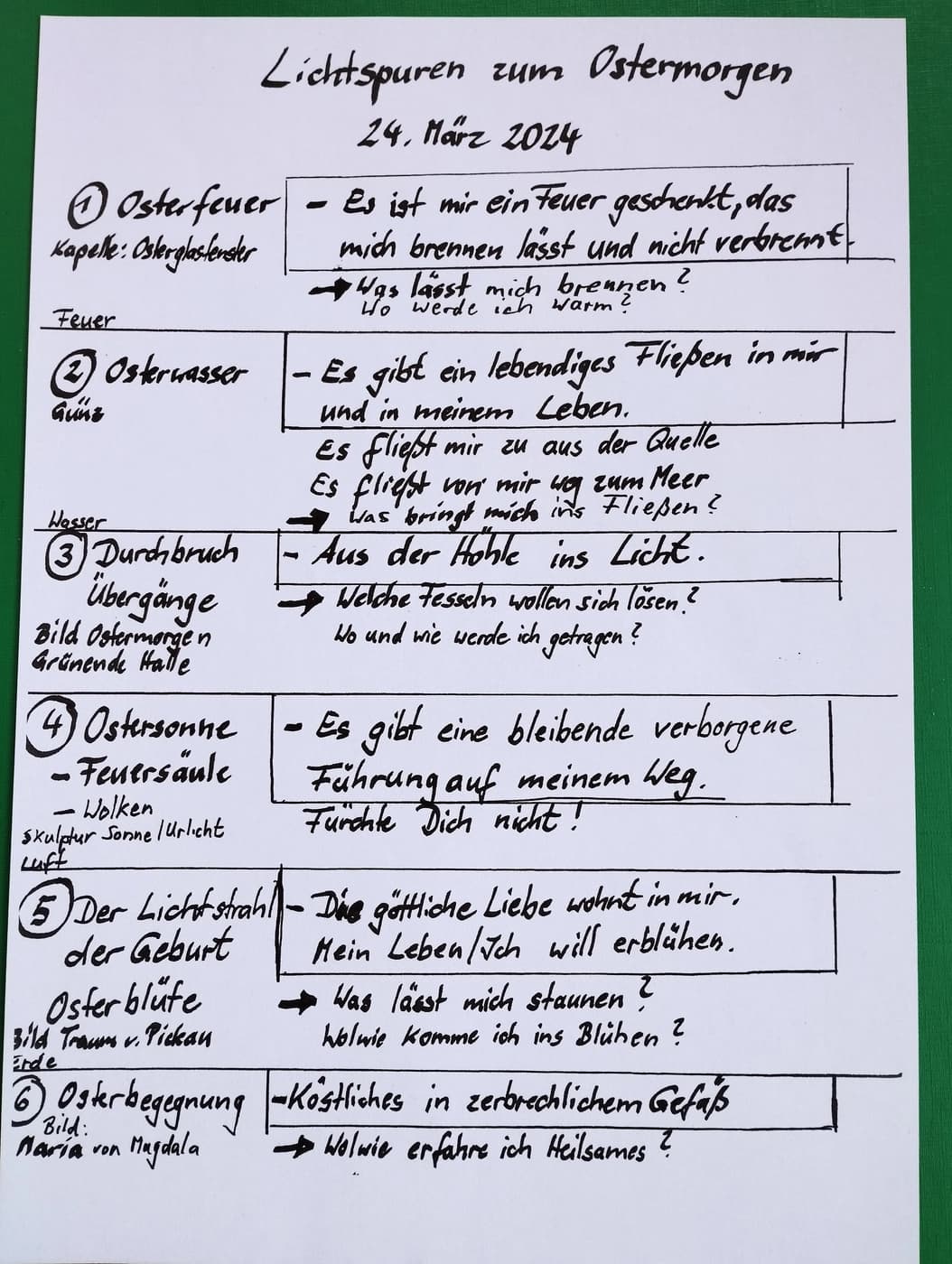 Hier sind die Grundgedanken des “Lichtspuren”-Weges von Frau Maidl handschriftlich zusammengefasst: